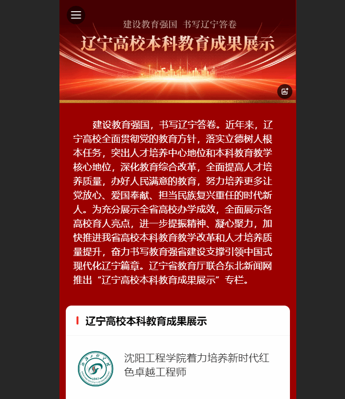 辽宁高校本科教育成果展示:http://m.dongbeixinwenwang.com/lngxcjxl/index.html?checkWxLogin=true&openId